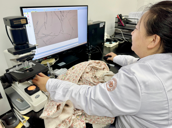 羽绒被里填充的是不是真的羽绒?蚕丝被里的蚕丝有没有使用荧光增白剂?面料的强力牢不牢、耐摩擦色牢度好不好?2025年,南通在市纤检所以及海门、通州两大家纺市场设置三个快检服务工作站,以免费快检服务回应消费者对于家纺产品质量的疑问。免费快检项目包括标志标识、荧光增白等非破坏性试验项目,以及纤维成分初步定性,断裂强力、密度、耐摩擦色牢度,填充物品质等破坏性试验项目。