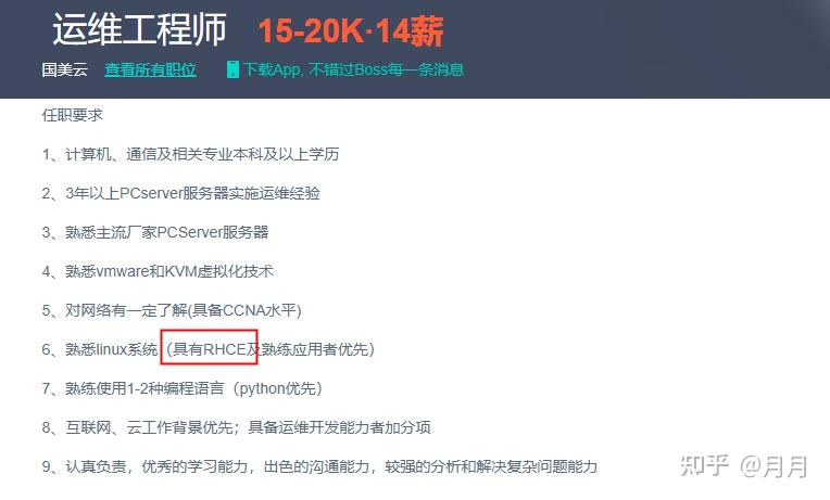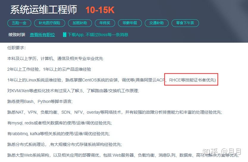 我们来看一看运维的招聘要求,很多职位要求都明确标明有RHCE、RHCA优先录用: