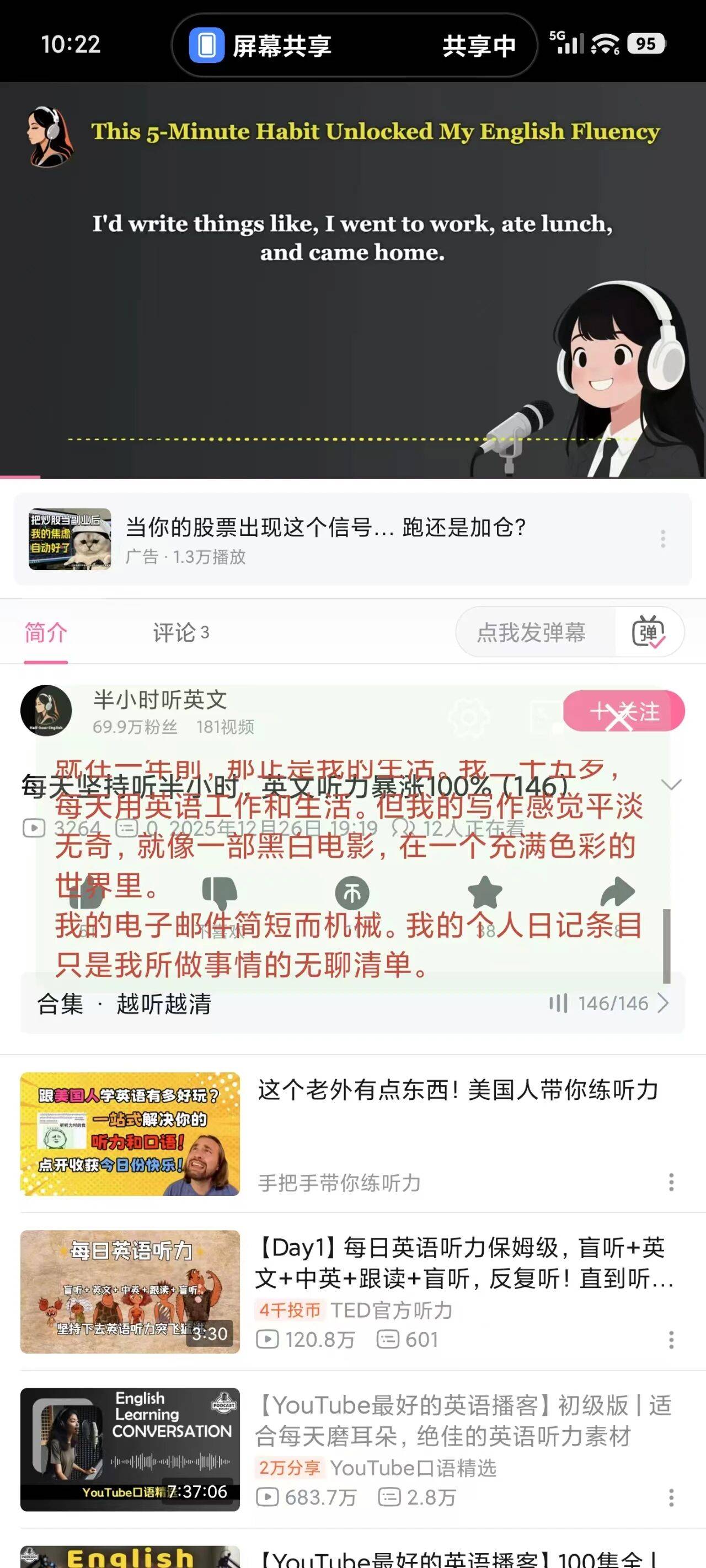 我试了下,英文无字幕视频的实时翻译,完全没问题没问题,延迟非常低,而且悬浮窗口在下方,完全不影响观看体验。