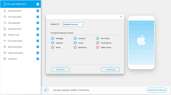 - 支持将 iTunes 备份恢复到 Android 手机。