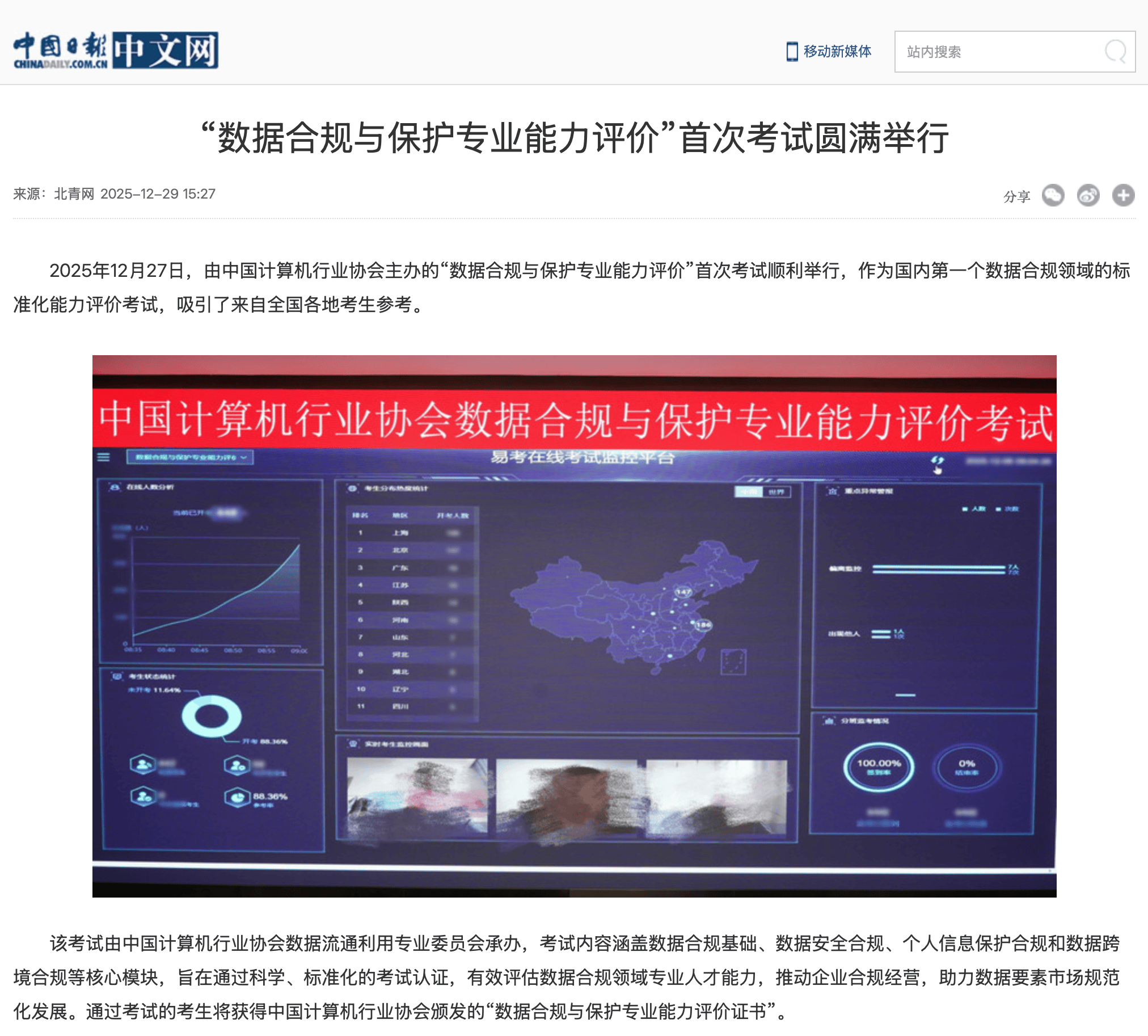 为此,聚焦于数字经济时代人才能力建设的“数字人才培养工程”应运而生,旨在系统化、规范化地提升从业人员在数据安全、隐私保护、合规治理等方面的核心素养与实践能力。作为该人才培养体系中的重要环节和能力验证标杆,数据合规与保护专业能力评价考试 得到了广泛关注与认可。