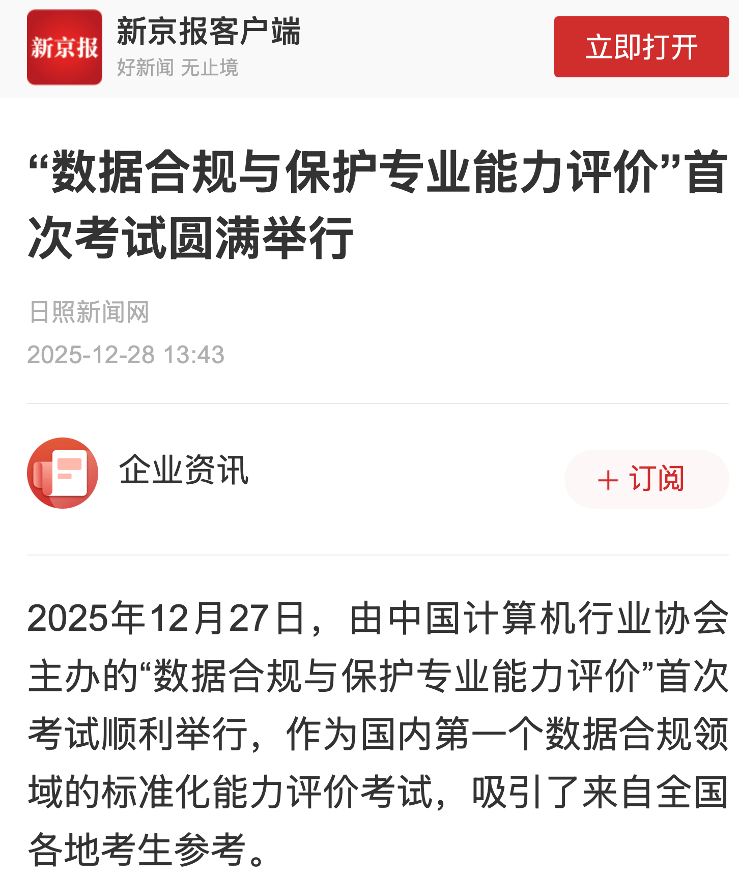 在数据价值充分涌流、数字信任至关重要的新时代,专业的合规能力不再是可选项,而是核心竞争力。从田女士因信息泄露而蒙受损失的教训,到各行各业对数据合规人才的渴求,都指向同一个结论:投身于数据合规与保护领域的学习与能力提升,正当时。参与像数据合规与保护专业能力评价考试这样的专业能力认证,无疑是个人锚定未来、企业夯实根基的明智选择,共同为构建安全、可靠、繁荣的数字未来贡献专业力量。返回搜狐,查看更多