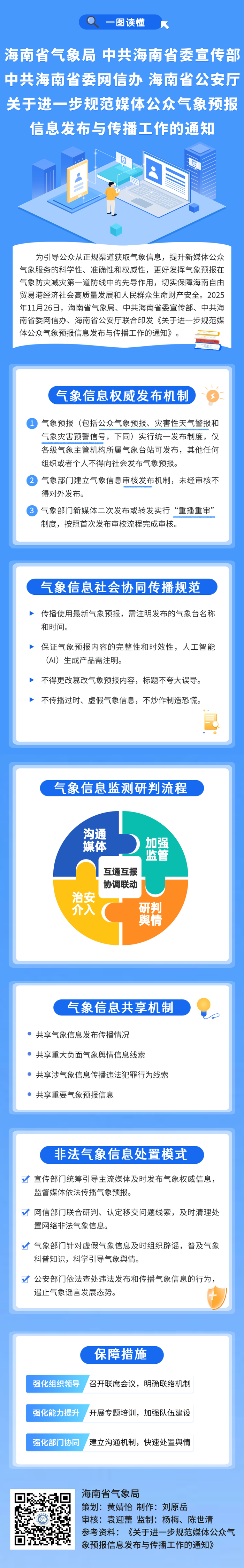 一场以法治为基石、以协同为核心、以科技为支撑的气象信息传播治理变革在海南展开,并凝结成一份标志性制度成果——2025年11月26日,海南省气象局联合省委宣传部、省委网信办、省公安厅印发《关于进一步规范媒体公众气象预报信息发布与传播工作的通知》(以下简称《通知》)。