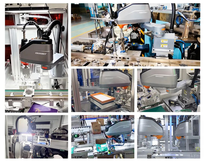 除了上述场景应用,海康机器人SCARA产品方案通过软硬件融合,实现感知-决策-执行闭环,在降低开发门槛,缩短调试周期等方面为客户带来显著改善。凭借优异性能,SCARA产品还灵活高效的服务于锂电行业电池包金属部件热铆压接、电机转子、充磁线磁材上下料、PCB板上下料等场景,助力企业降本增效,加速智能化升级。
