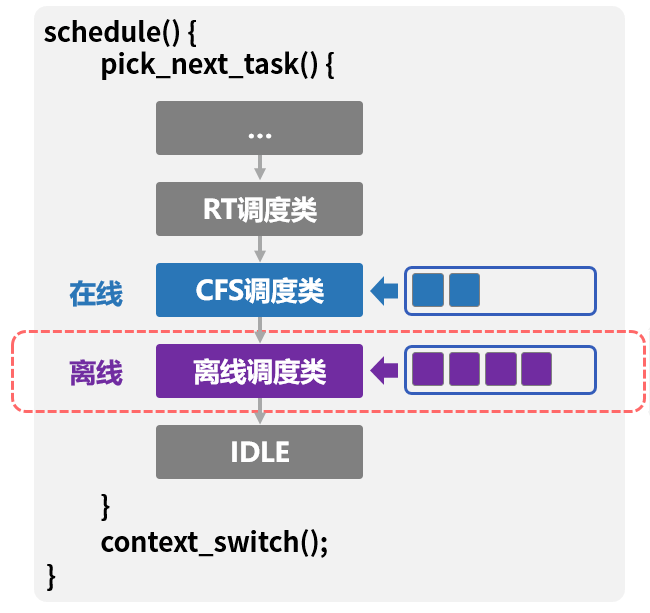 在离线混部并非新的概念。其核心是将延迟敏感的在线任务跟计算密集但对时延没那么敏感的离线任务部署到同一台物理机上,以此提升资源利用率。然而,要搞懂在离线混部难以落地的原因,就得从操作系统的调度方面去看,Linux 默认采用的 CFS 调度类,力求做到公平,即便高优任务也得参与公平队列的时间片分配。但是,在实际的人工智能和在线服务中,延迟敏感型任务所需的是绝对的优先,而非公平。