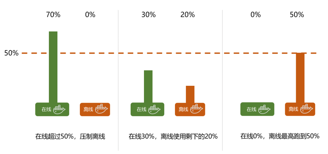 在大规模业务实践时,企业往往会利用提高在线任务权重、分配更多 CPU 配额等方式来避免资源冲突,然而收效甚微。在推进混部尝试的阶段,网络带宽猛然下降使得请求超时、离线大文件读写造成 IO 的阻塞现象、CPU 争抢引起卡顿,都是司空见惯的现象。因此,虽然混部从理论角度讲是可行的,然而在稳定性要求极为苛刻的 AI 训练、在线交易等场景,企业宁可付出额外的成本,也不敢贸然尝试。