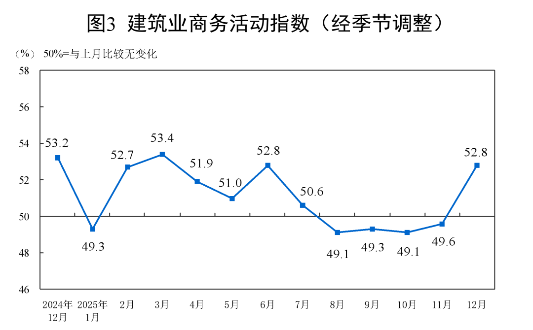 分行业看,建筑业商务活动指数为52.8%,比上月上升3.2个百分点;服务业商务活动指数为49.7%,比上月上升0.2个百分点。从服务业行业看,电信广播电视及卫星传输服务、货币金融服务、资本市场服务等行业商务活动指数均位于60.0%以上高位景气区间;零售、餐饮等行业商务活动指数均低于临界点。