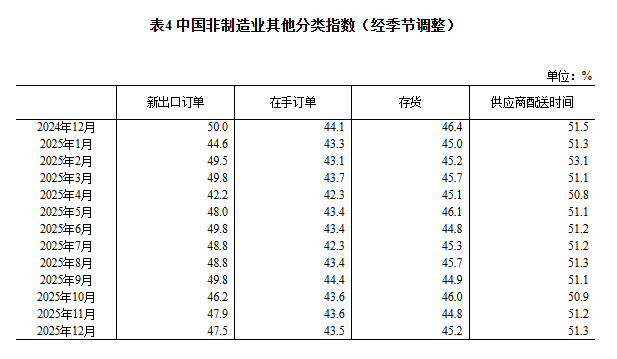 供应商配送时间指数为50.2%,比上月上升0.1个百分点,表明制造业原材料供应商交货时间继续加快。