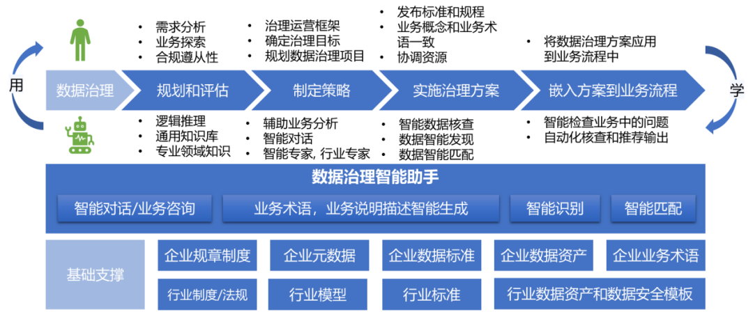 图7:数据资产入表路径图未来数据治理体系建设将遵循“双向驱动、治理应用融合”的战略路径,以AI赋能的智能治理新范式为核心导向,深度集成人工智能技术于资产识别溯源、标准体系优化、质量动态管控、安全风险防控等全链条环节,推进治理能力数智化跃升。