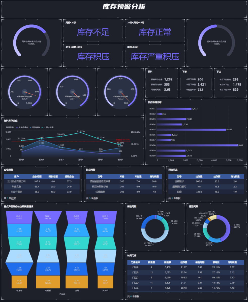 效期与损耗风险:有保质期的物料(食品、药品等)过期报废;物料受潮、生锈、破损等物理损耗;技术迭代导致电子元件、设备配件等贬值。 积压与缺货风险:盲目备货导致物料长期滞库,占用资金和仓储空间;库存结构失衡,热销 / 核心物料断供,影响销售或生产。关注库存风险,核心是控损失、稳运营、保利润: