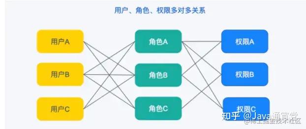 简单来说就是一个用户拥有多个角色,一个角色可以被多个用户拥有,这是用户和角色的多对多关系;同样的,角色和权限也是如此。