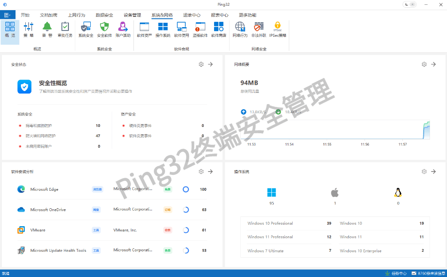 Ping32 软件合规管理系统是一套高性价比的、企业级、驱动级加密技术、AES256加密算法、多场景适配、军工级、符合国密算法标准、通过等保合规要求、符合国家密码管理规范、面向中大型企业的软件使用与合规治理平台,主要用于统一管理终端中已安装和正在使用的软件,帮助企业解决盗版软件、私自安装软件以及授权混乱等常见问题。