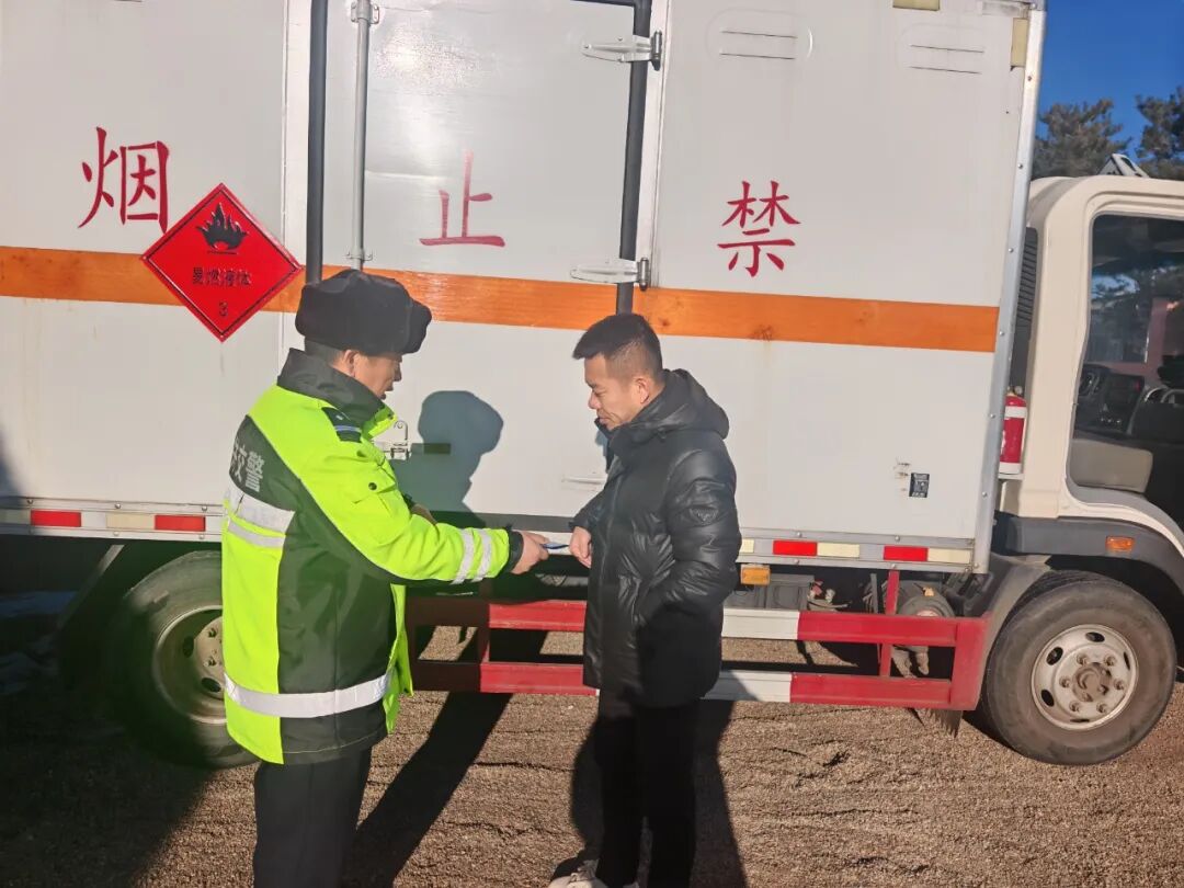 交警部门在检查中坚持“检查一辆车、教育一群人、警示一企业”的原则,与企业负责人、安全管理员进行面对面约,通报近期典型危化品运输事故案例,深刻剖析冬季运输风险;督促企业严格落实安全生产主体责任,建立健全并严格执行车辆维护、人员培训、动态监控、应急处置等规章制度;要求企业针对冬季气候特点,制定专项运输方案和应急预案,加强对驾驶员、押运员的冬季安全行车教育。