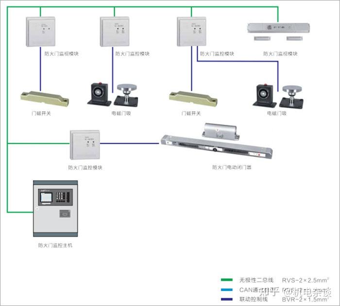 系统由防火门监控器、监控模块、门磁开关、电磁闭门器、电磁释放器等部分或全部设备组成。有效解决了建筑中防火门通道即能便于出入,又可起到安全疏散、防火隔烟的作用。