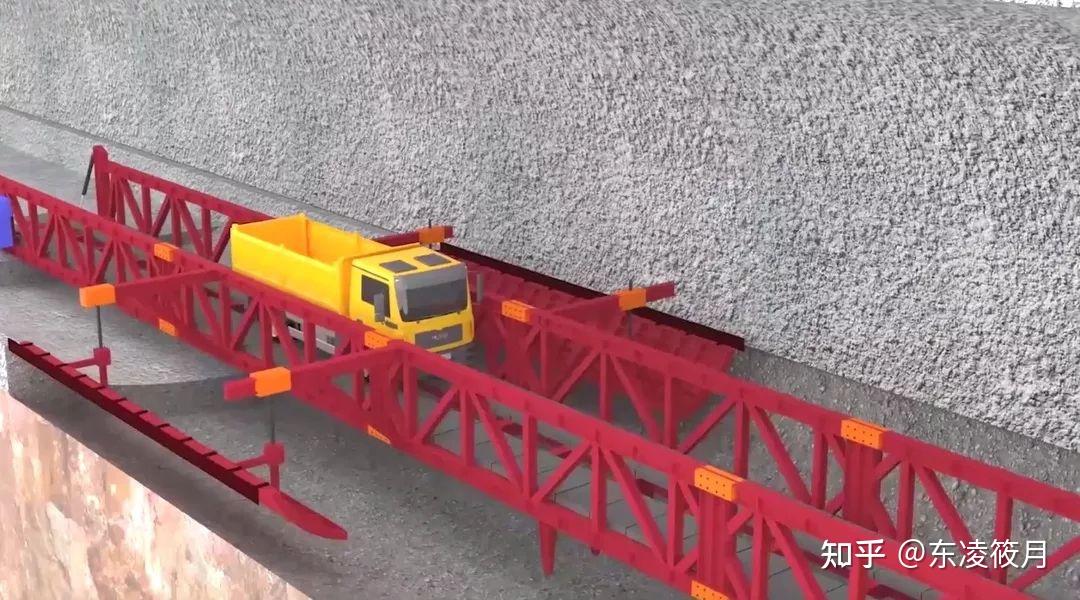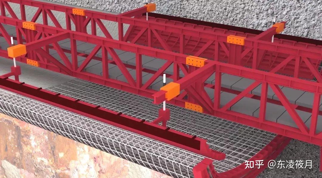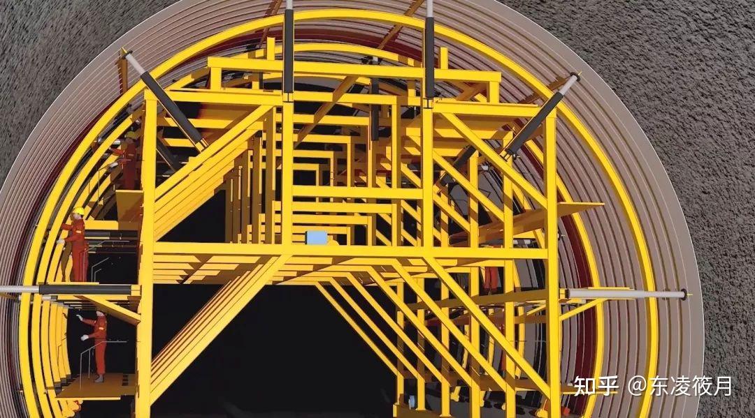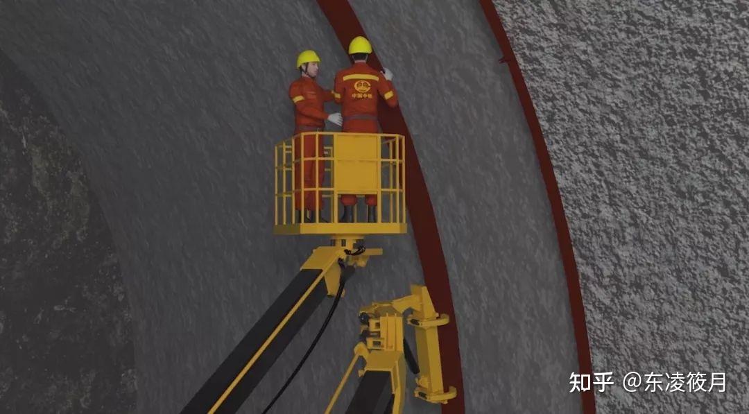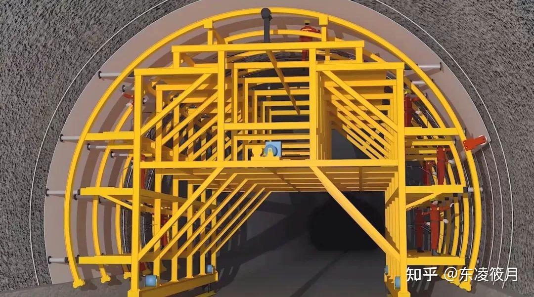 爆破后的围岩极不稳定,必须安装拱架来支撑隧道顶部的压力。这事儿,全靠拱架安装台车啦!