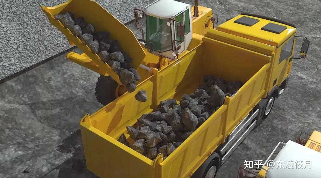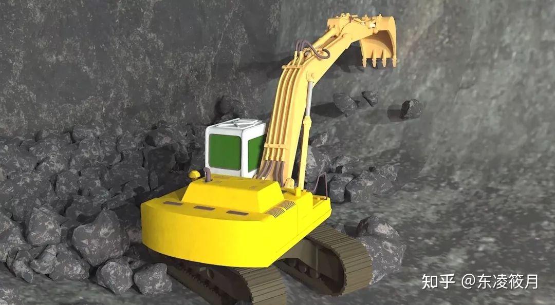爆破后,由挖掘机和自卸汽车迅速清理现场。