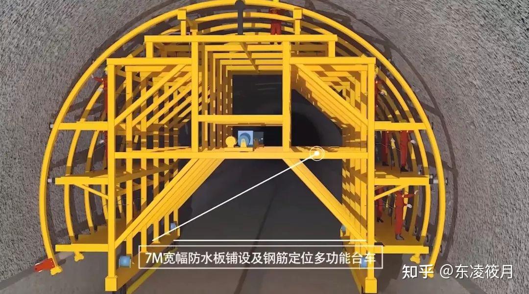 隧道施工中,暗河涌动,水流不断。项目特制的防水板和钢筋网片就变成了隧道顶部的保护膜。