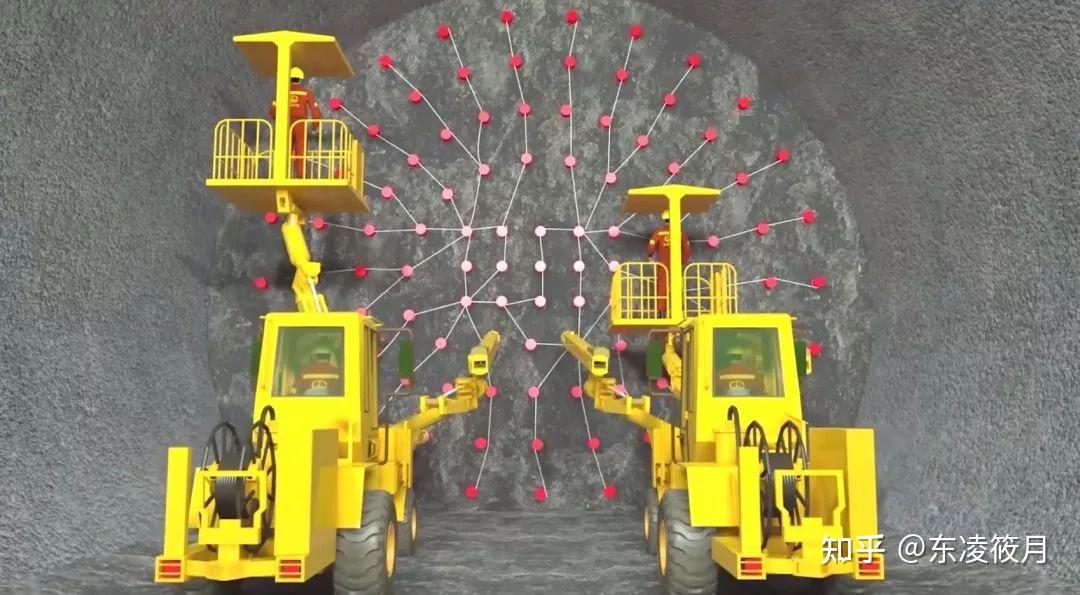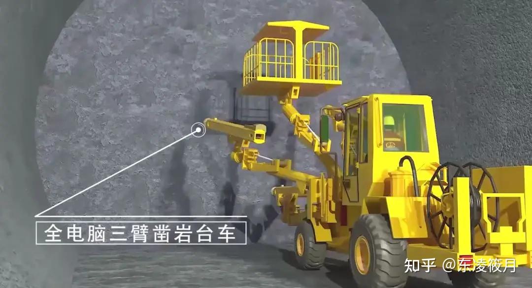 开挖施工主要介绍全电脑三臂凿岩台车,用于隧道施工的超前预报钻探、洞内管棚、开挖钻孔、锚杆施工、辅助装药、断面扫描以及数据传送,是隧道开挖的排头兵!