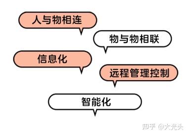 我们可以看到物联网有如下几个特点:人与物相连、物与物相联、信息化、远程管理控制、智能化。