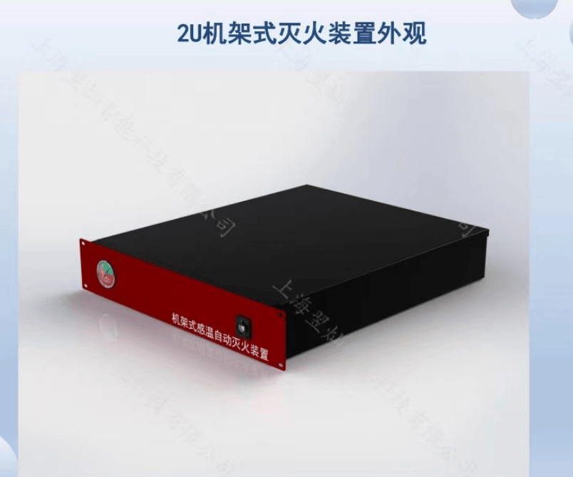 早期探测与快速响应:装置内置探测器(如热敏线)靠近潜在火源布置,可在火情初期迅速识别并触发。 洁净灭火与定向释放:采用洁净气体或气溶胶等绝缘、无残留灭火剂,通过喷嘴在机柜内定向释放,直接抑制火源。 模块化设计与灵活部署:采用标准机架尺寸,安装便捷,可根据不同机柜的风险等级进行针对性配置。 独立运行与系统联动:每套装置自成独立系统,动作时不影响其他机柜运行,同时可通过信号接入数据中心整体监控平台。