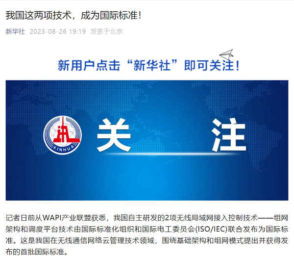 WAPI产业联盟发布WLAN证书鉴别漫游应用扩展技术要求团体标准