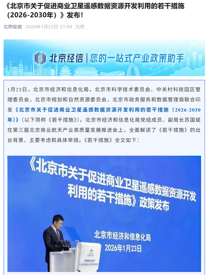 北京发布措施促进商业卫星遥感数据开发,加强人工智能等技术应用