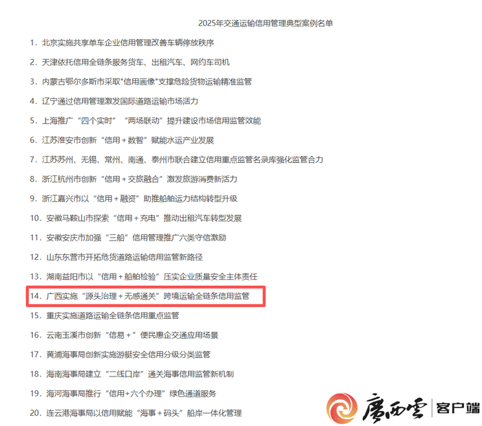 广西一案例入选2025年交通运输信用管理典型案例